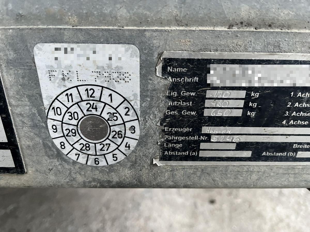Humer Einachsanhänger mit 170kg Eigengewicht, 480kg Nutzlast, GG 650kg, 2770x1580mm, siehe Typenscheinkopie im Downloadbereich