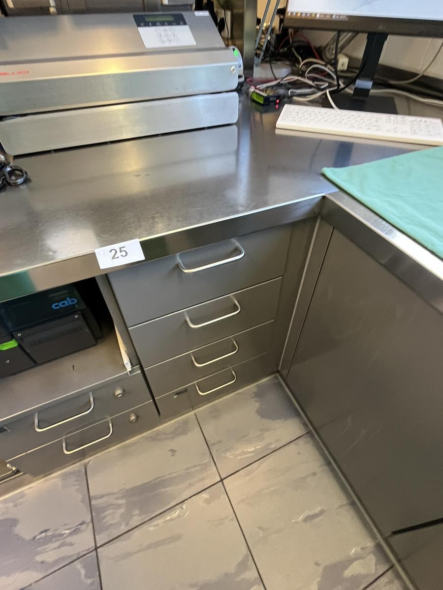Edelstahl Arbeitstischmodul, ca. 205x200x85cm, links rechts mit Aufsatz