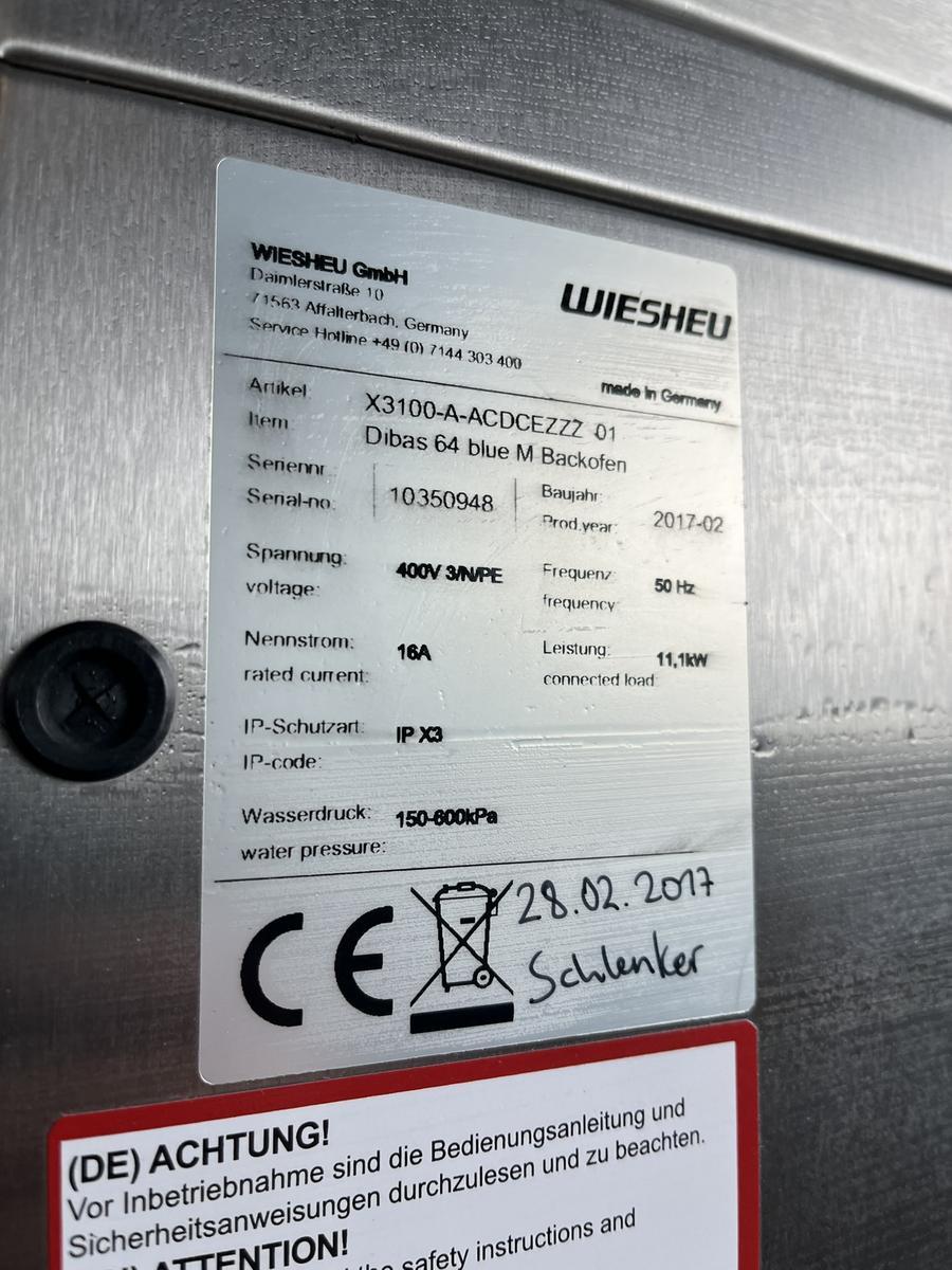WIESHEU X 3100 Dibas Backofen blue M 111. kW X 600 Gärschrank und X 005 10 Einschübe Baujahr 2016/2017?d=2026-03-29 18:32:11