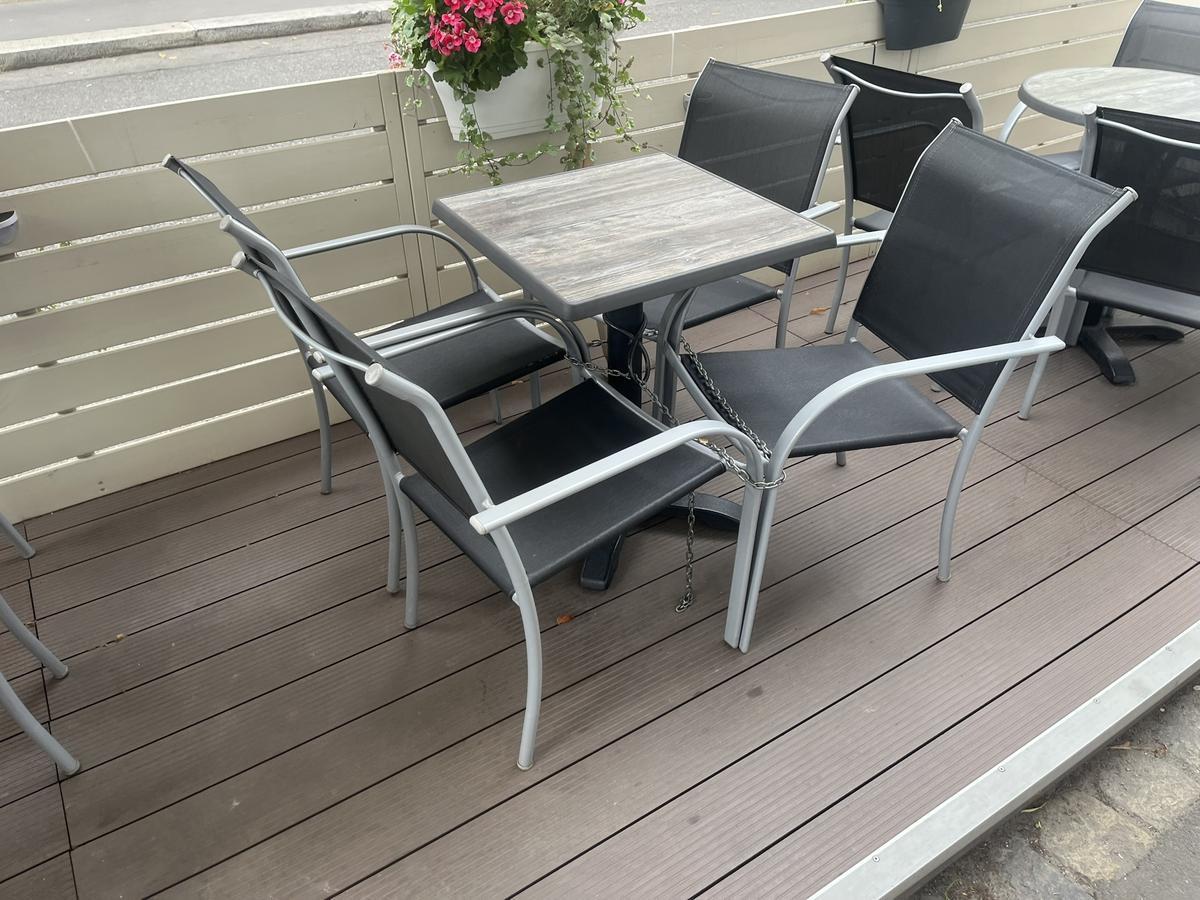 kpl. Gastgarten: 22 Stk.Stühle,4 Stk. Tische 70 cm, 1 Stk. 60x60 cm