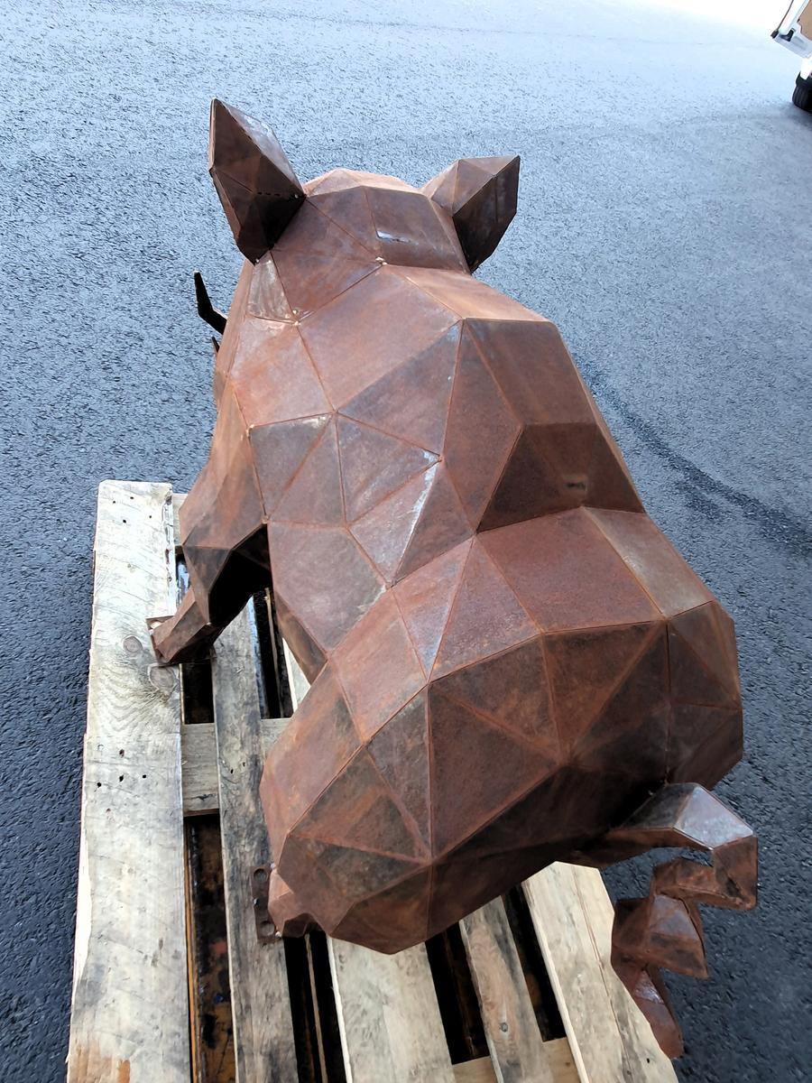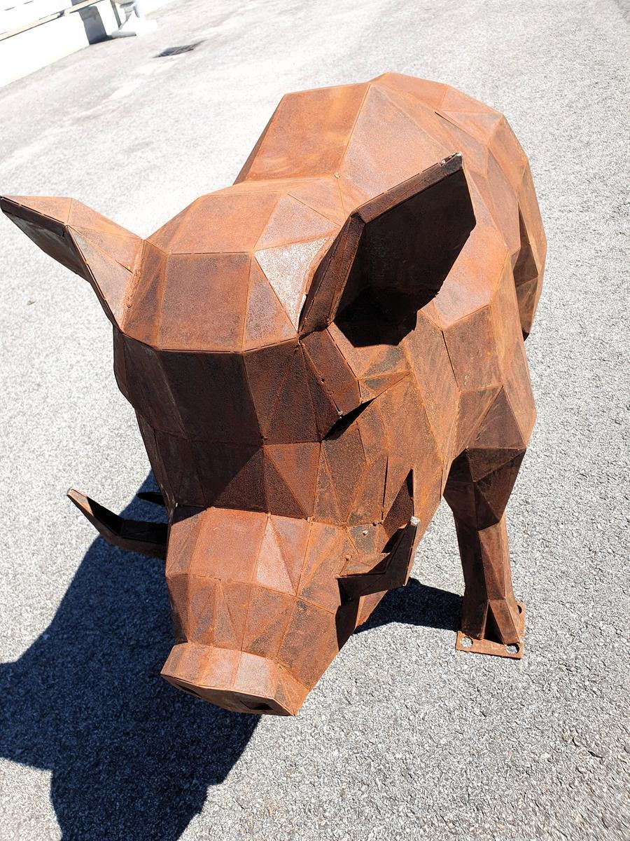 Wildschwein Skulptur aus Cortenstahl, handgefertigt, ca. 35kg, Abmessung rund L 120 / B 50 / H 80 cm, Wandstärke 1.5mm