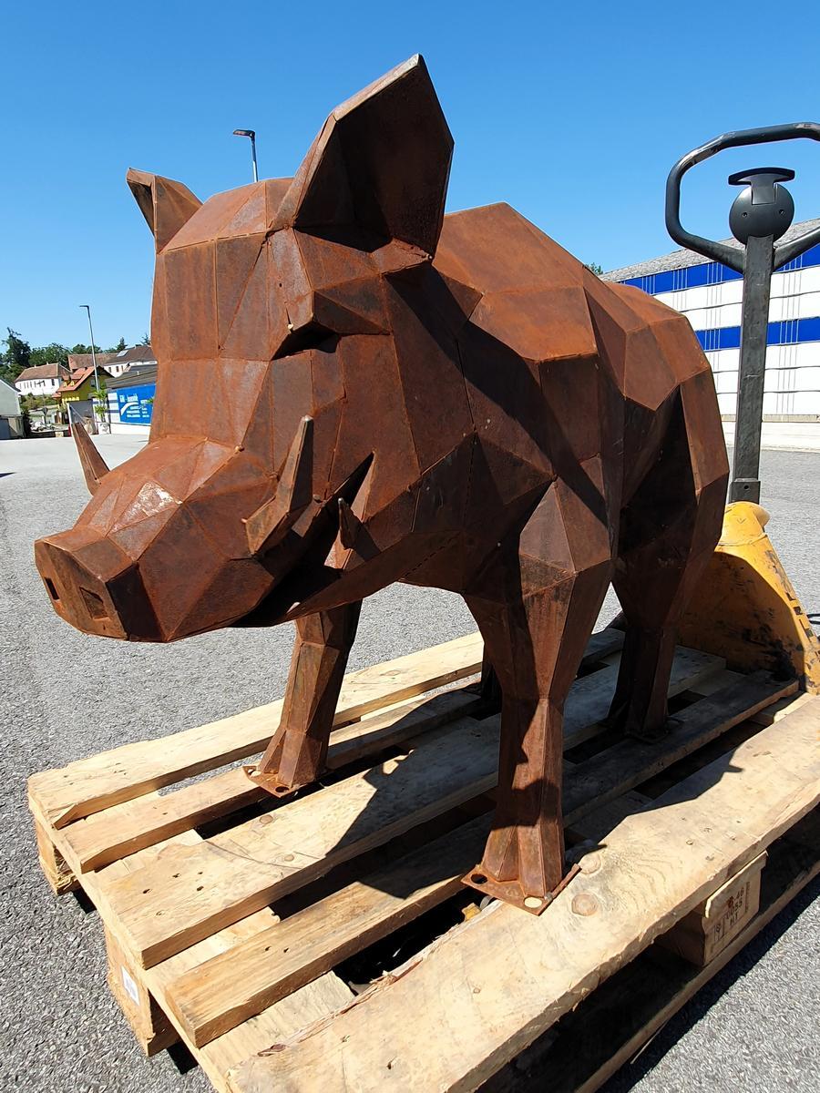 Wildschwein Skulptur aus Cortenstahl, handgefertigt, ca. 35kg, Abmessung rund L 120 / B 50 / H 80 cm, Wandstärke 1.5mm?d=2025-11-13 19:07:47
