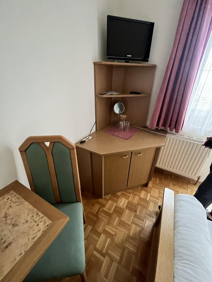 Doppelbett mit 2 Stk. Matratzen ca.200/80 cm , Doppeltür-Kleiderschrank ca. 218/93/58 cm , Tisch ca. 65x50 cm, Eckverbau ohne Kühlschrank ca. 73/64/69 cm?d=2025-12-16 02:20:19