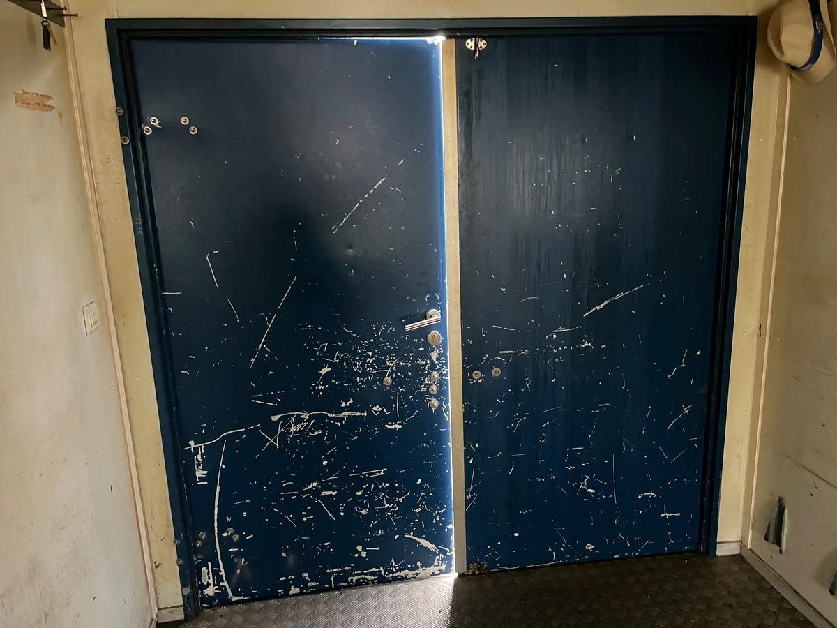 Containex Büro-Lagercontainer mit Doppeltüre, Fenster stirnseitig, Elektroinstallation, Alu Riffelblech Boden, 6055x2435x2590mm, isoliert