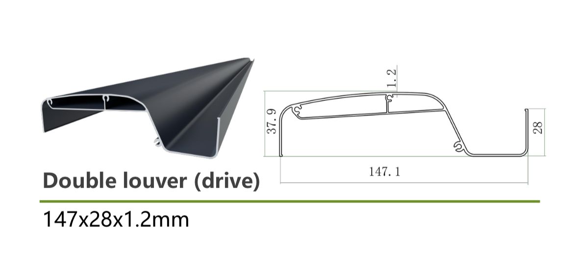Beschreibung: Kurbelmechanismus - Öffnung und Schließung in wenigen Sekunden - Lamellen schwenkbar, Säulen ca. 110x110mm, Lamellen ca. 147x28mm, inkl. Montagematerial, Symbolfoto