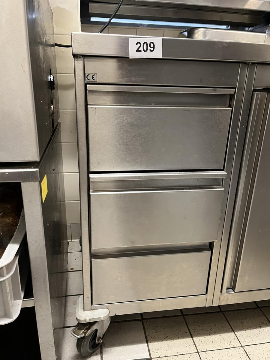 Edelstahl Arbeitstisch mit Rollen 3 Laden und 1 Flügeltüre ca.100/70/90 cm?d=2026-03-09 21:33:28