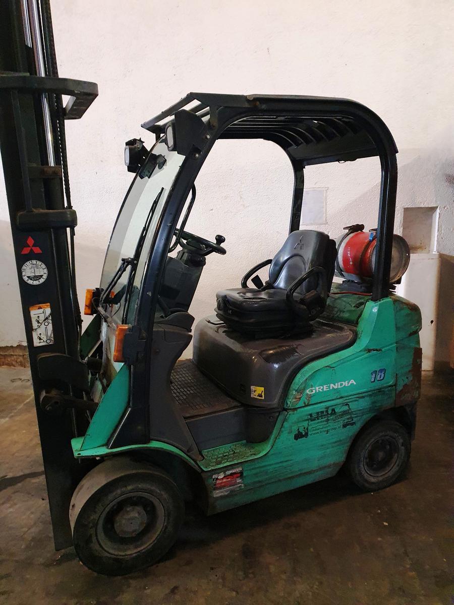 Mitsubishi FG18N Gasbetriebener Stapler / Seriennummer: EF34L-40438, Baujahr: 2007, Betriebsstunden: 16.789, Hubhöhe: 4,750 m, Tragfähigkeit: 1.750 kg, Freihubstapler, Hubgerüst: 3 hydraulische Steuerkreise, Geschwindigkeit: max. 20 km/h, Eigengewicht: 2.?d=2026-01-03 08:08:03