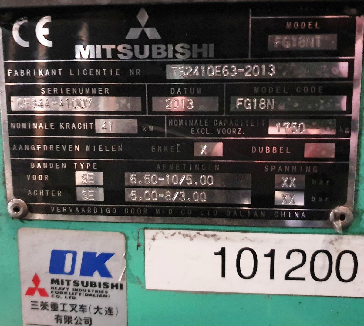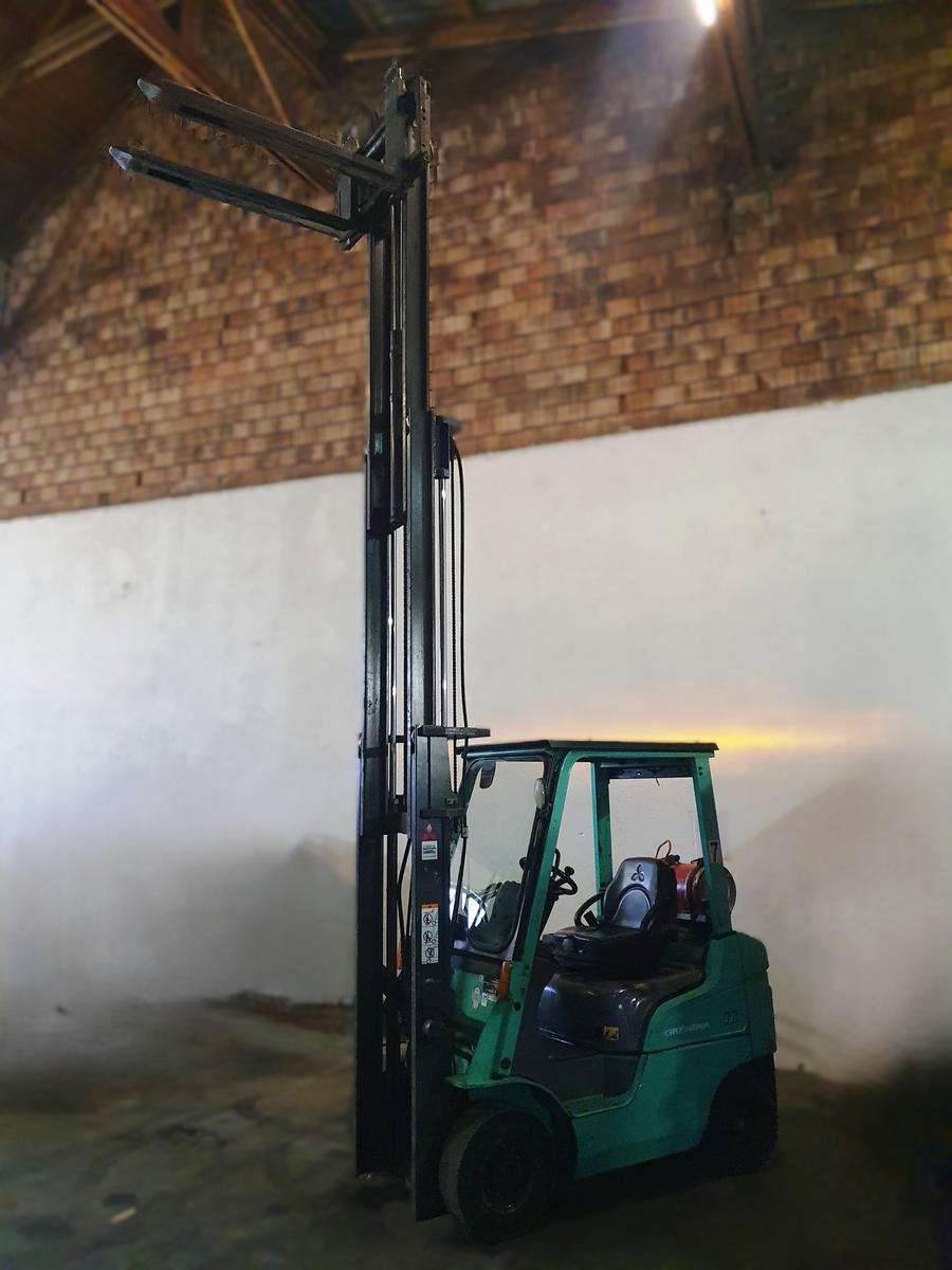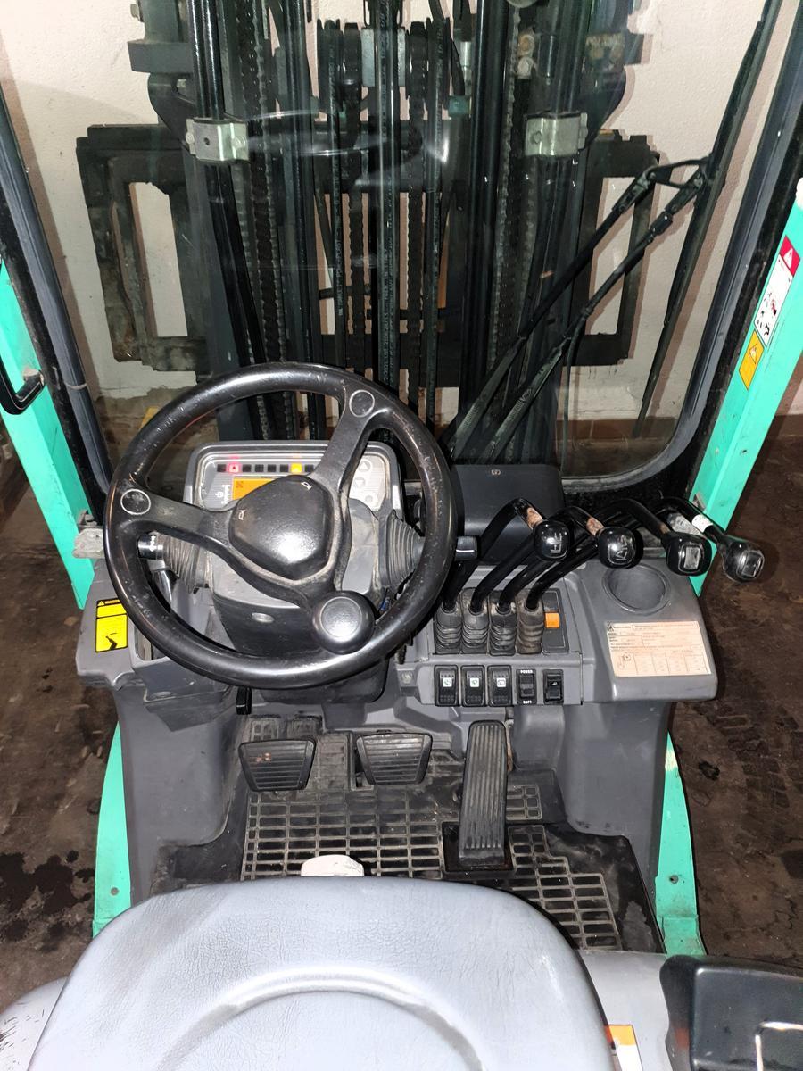 Mitsubishi FG18N Gasbetriebener Stapler / Seriennummer: CF34A-41007, Baujahr: 2013, Betriebsstunden: 9.326, Hubhöhe: 4,750 m, Tragfähigkeit: 1.750 kg, Freihubstapler, Hubgerüst: 4 hydraulische Steuerkreise, Geschwindigkeit: max. 20 km/h, Eigengewicht: 2.7?d=2025-11-19 01:52:30
