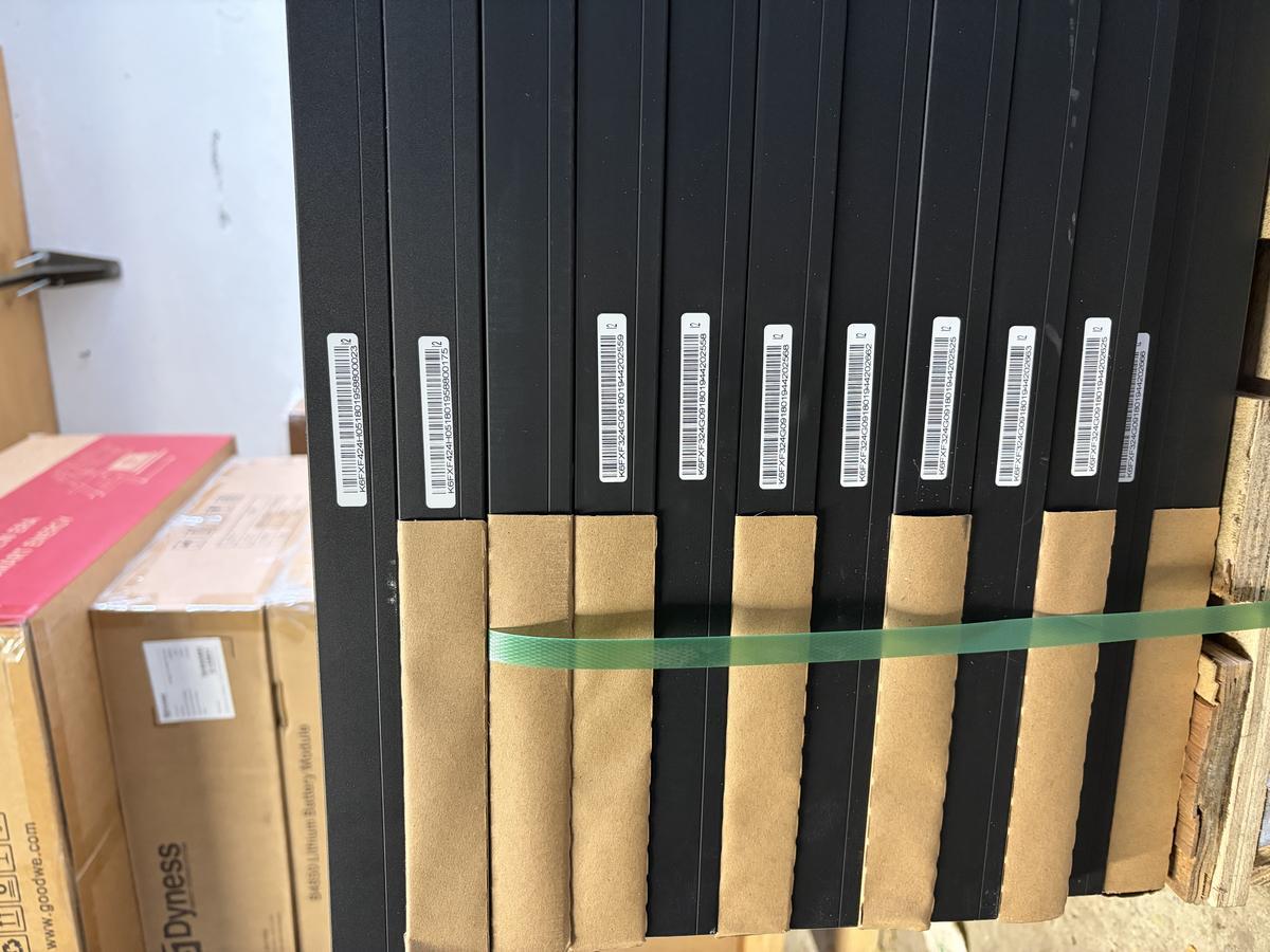 Beschreibung: inklusive Messspulen und Zähler. Batterie: 6x Dyness B4850 2,4 kWh, insgesamt 14,4 kWh, Lithium-Batterie, inklusive Kabelsatz - PV Paneele: 10 x Jinko JKM440N-54HL4R-B (440wp) 4,40kW Full Black - Zustand: ungenutzt/verpackt