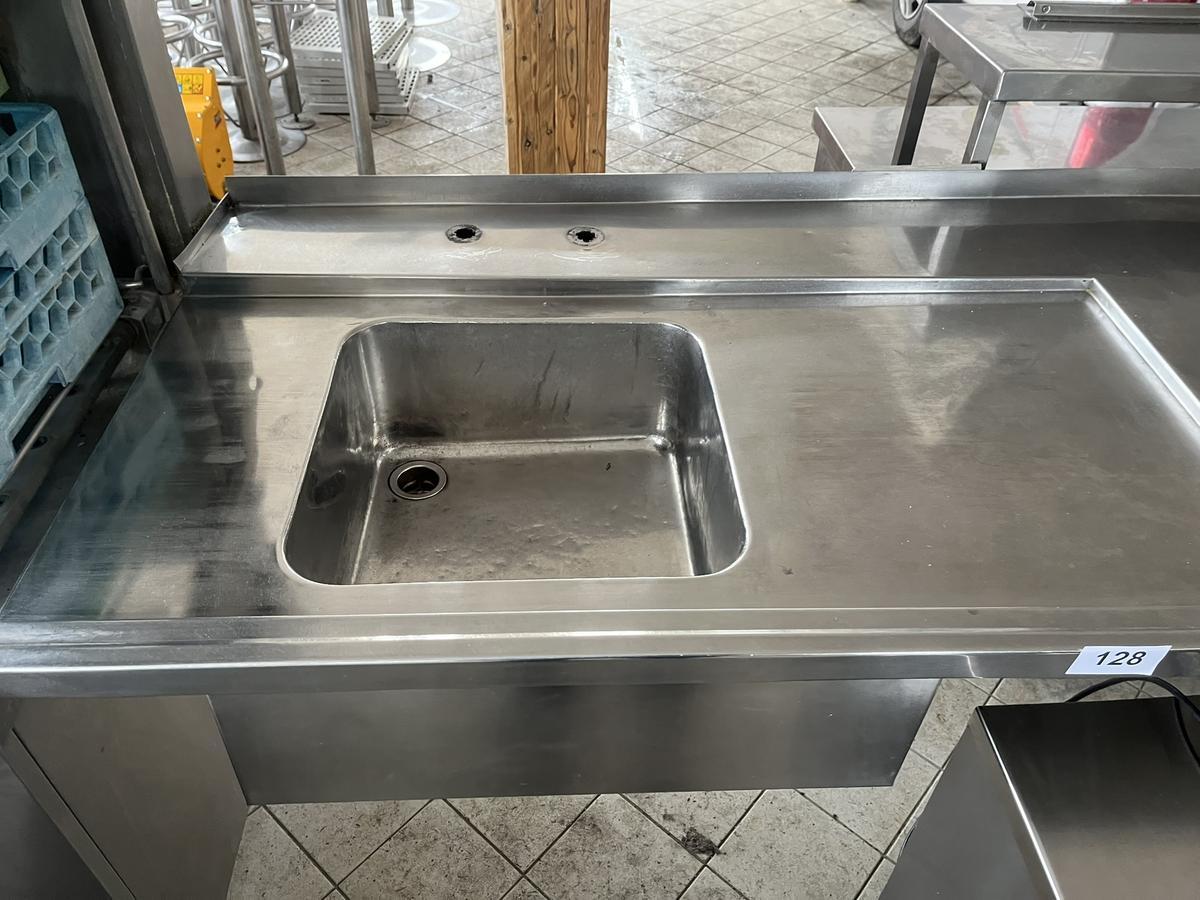 Edelstahl Zulauftisch, mit Ablage, ca. 214x78cm, mit Spülbecken 40x40cm