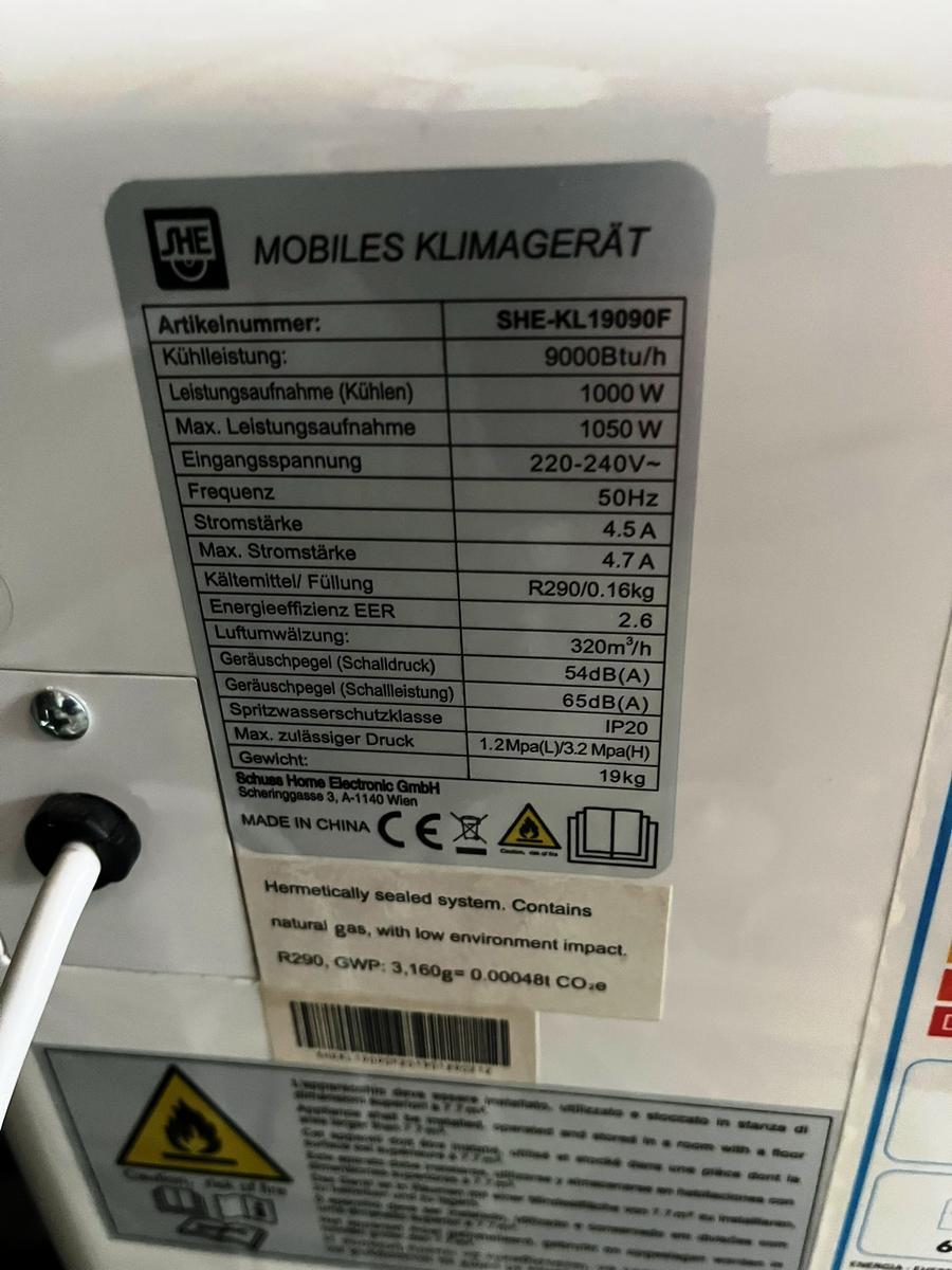 Raumklimagerät, mobil, SHE KL 19090, 230V, 320m³/h, 1050W?d=2026-04-30 16:27:17