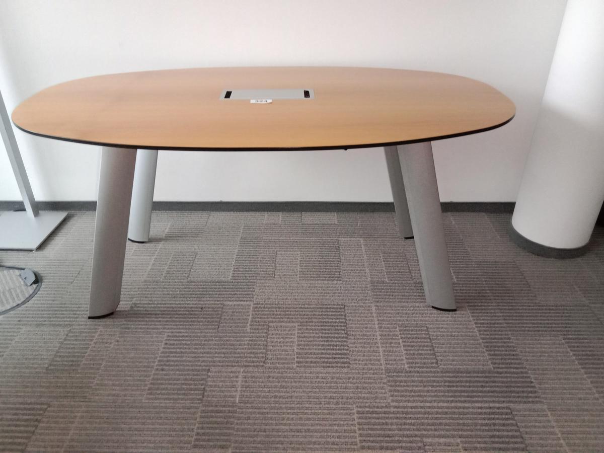 Besprechungstisch, oval, in Holzoptik, ca. 160x90cm, mit EDV Klappe, inkl. 6 Stk. Besprechungsstühlen von Bene mit Lederbezug?d=2025-10-12 00:19:08