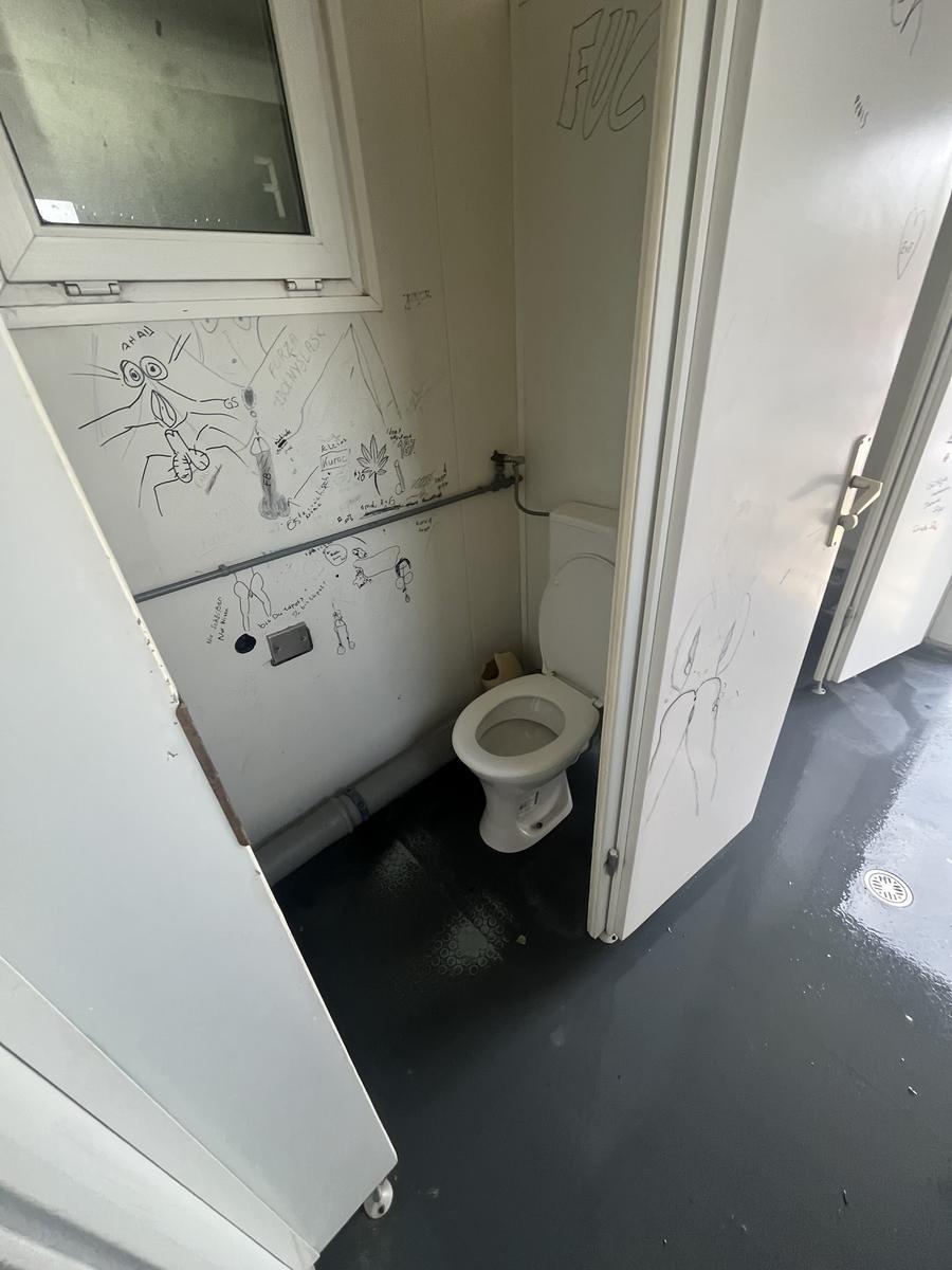 Beschreibung: 6000/2430/2600 mm 2 Duschen, 1 Boiler, 2 WC Kabinen, Urinalbecken, Waschbecken, E-Installatioon, Trennwand