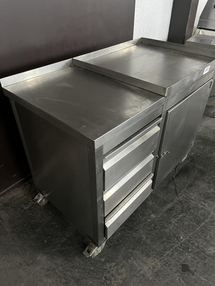 Edelstahlmodul 110x60x88cm, mit einer Flügeltüre und 3 Laden, Rollen?d=2025-11-29 10:18:12