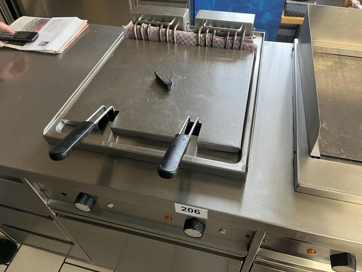 Arbeitsmodul ca. 162/70/85 cm mit Grillplatte und Doppelfriteuse, 2 Türen, 3 Auszugsladen in Edelstahlausführung