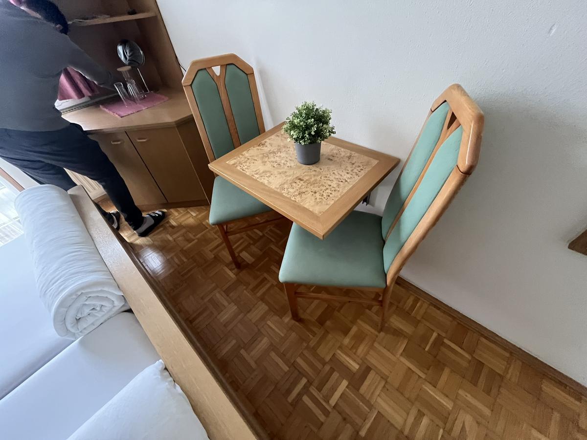 Doppelbett mit 2 Stk. Matratzen ca.200/80 cm , Doppeltür-Kleiderschrank ca. 218/93/58 cm , Tisch ca. 80x60 cm, Eckverbau ohne Kühlschrank ca. 73/64/69 cm?d=2025-12-16 00:19:50