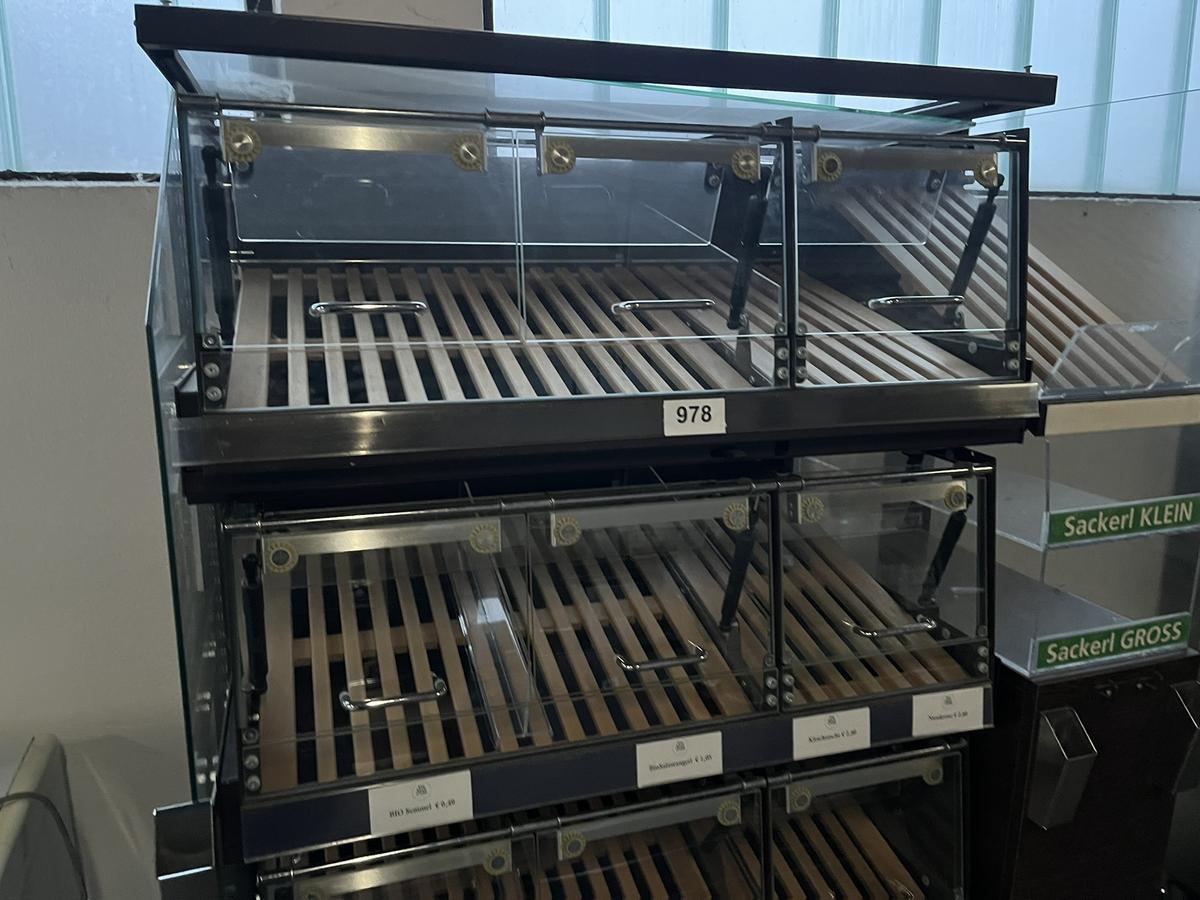 Beschreibung: Brotverkaufspult mit Spuckschutz ca. 130/70/180 cm