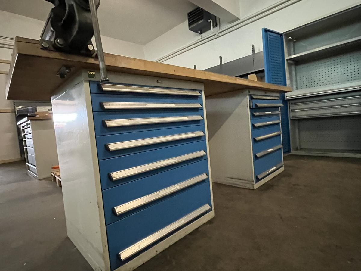 BOTT Werkbank  250/90 cm und Schraubstock - 2 Schubladenblöcken bis 75 kg Fachbodenlast?d=2026-03-30 02:18:59